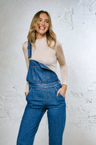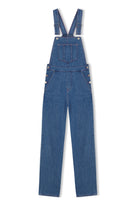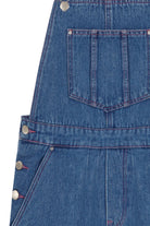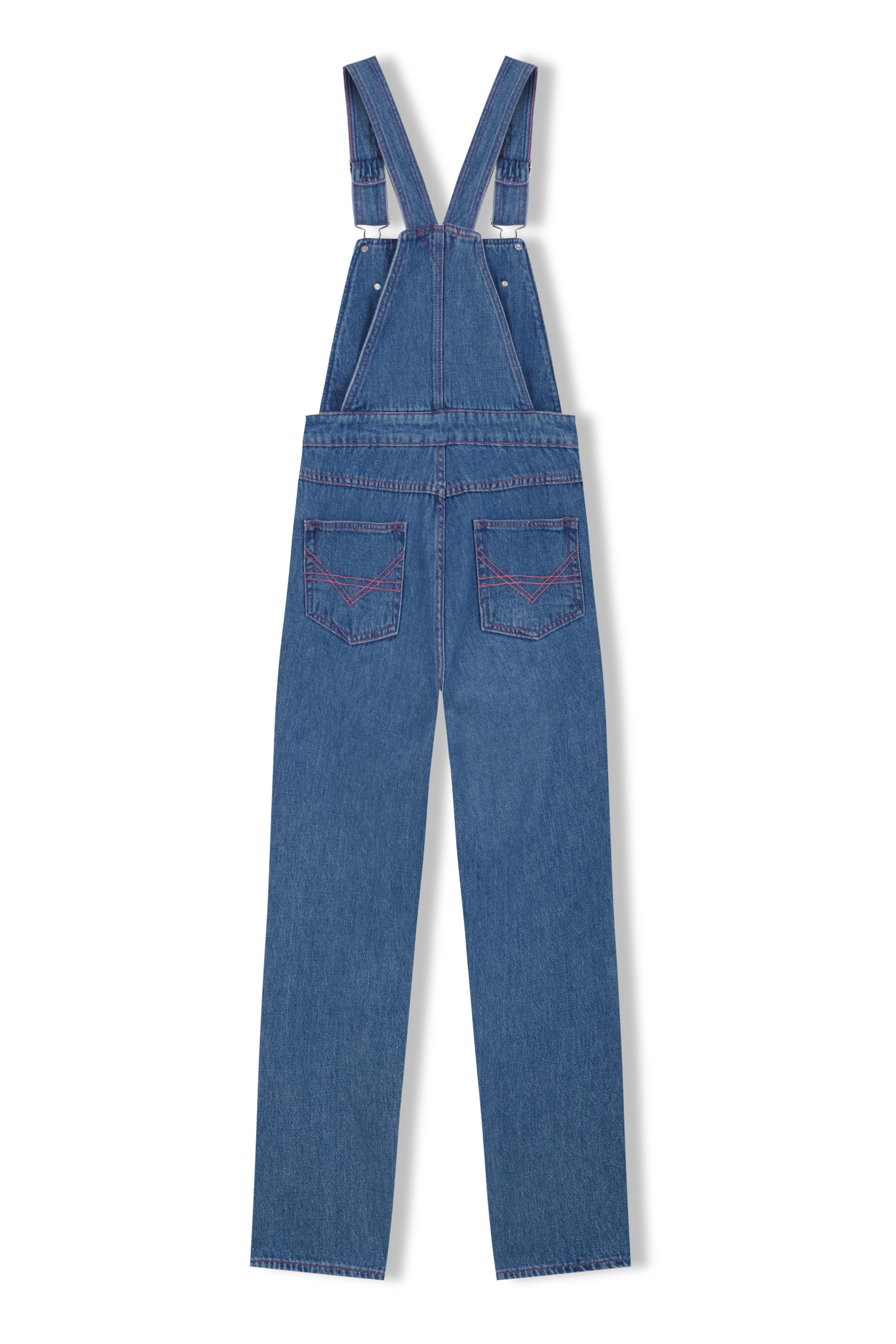 FRANKIE is a medium wash denim overall. Fitted through the hips, slightly relaxed at the thighs and a straight leg cut. Featuring adjustable straps, pink top stitching, a front design pocket and three fastening buttons placed right above the hips on each side, our reinterpretation of the traditional overall will achieve a desired relaxed look.