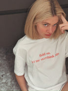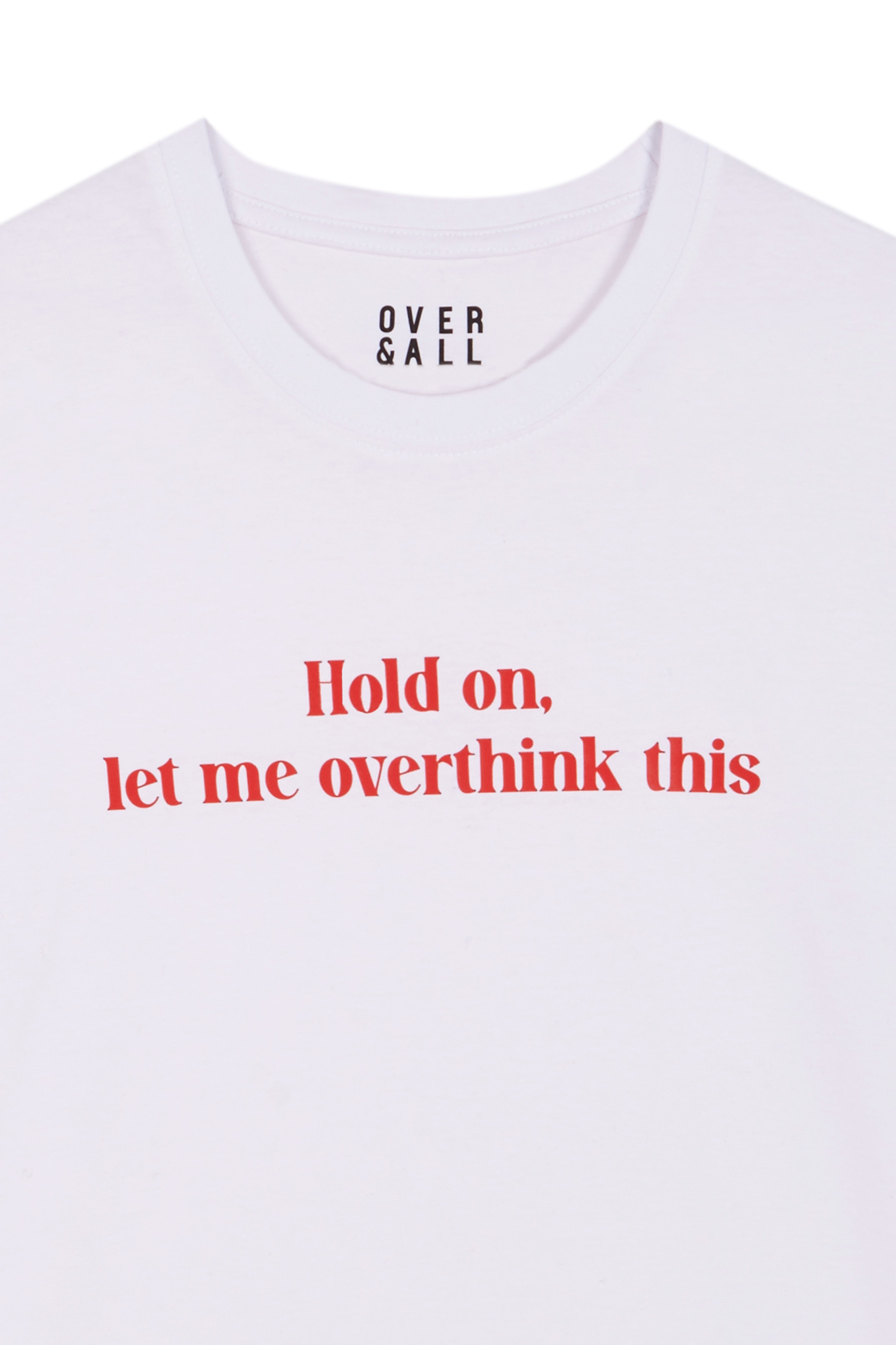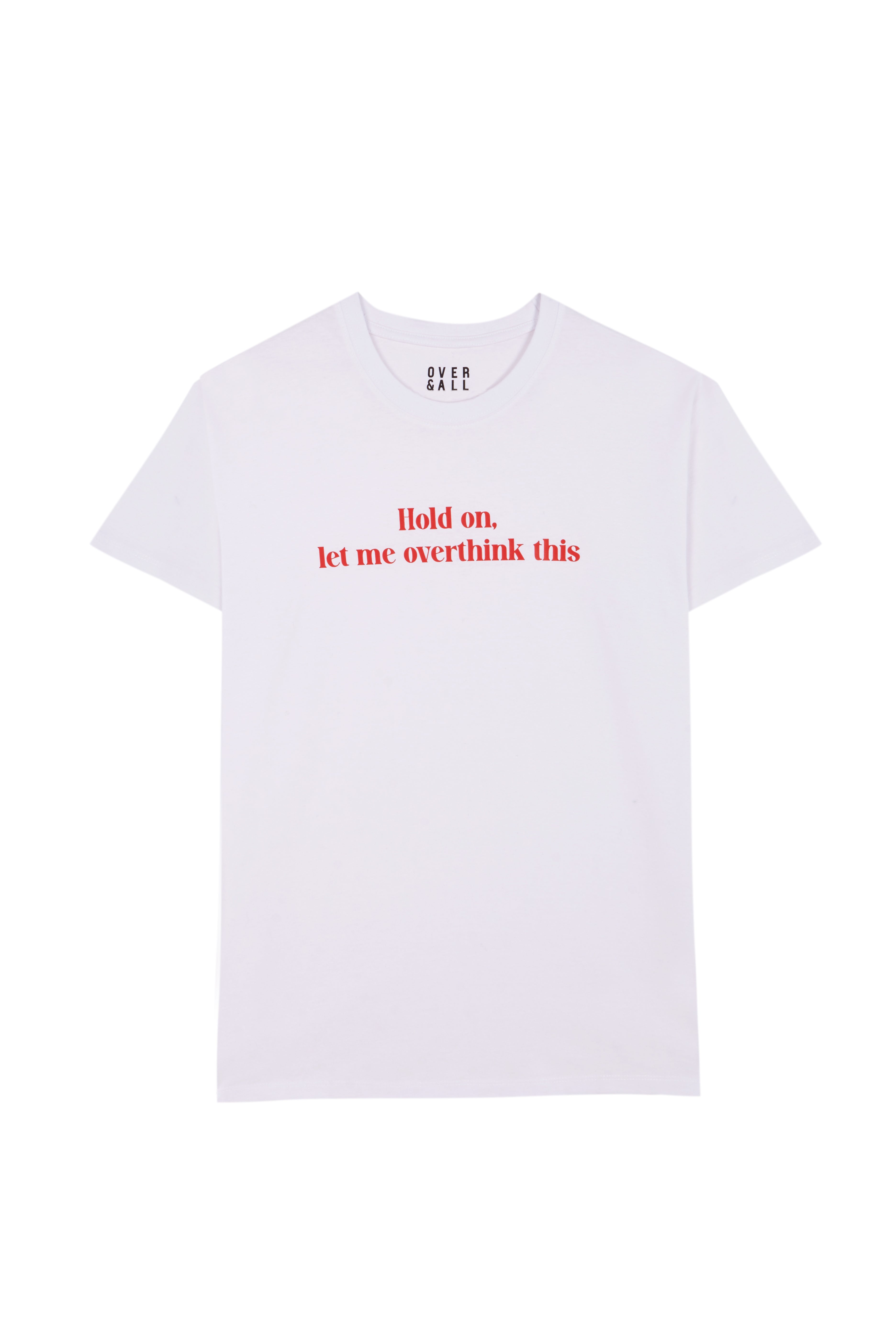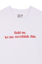White Organic Cotton Tee with red print " Hold on, let me overthink this"