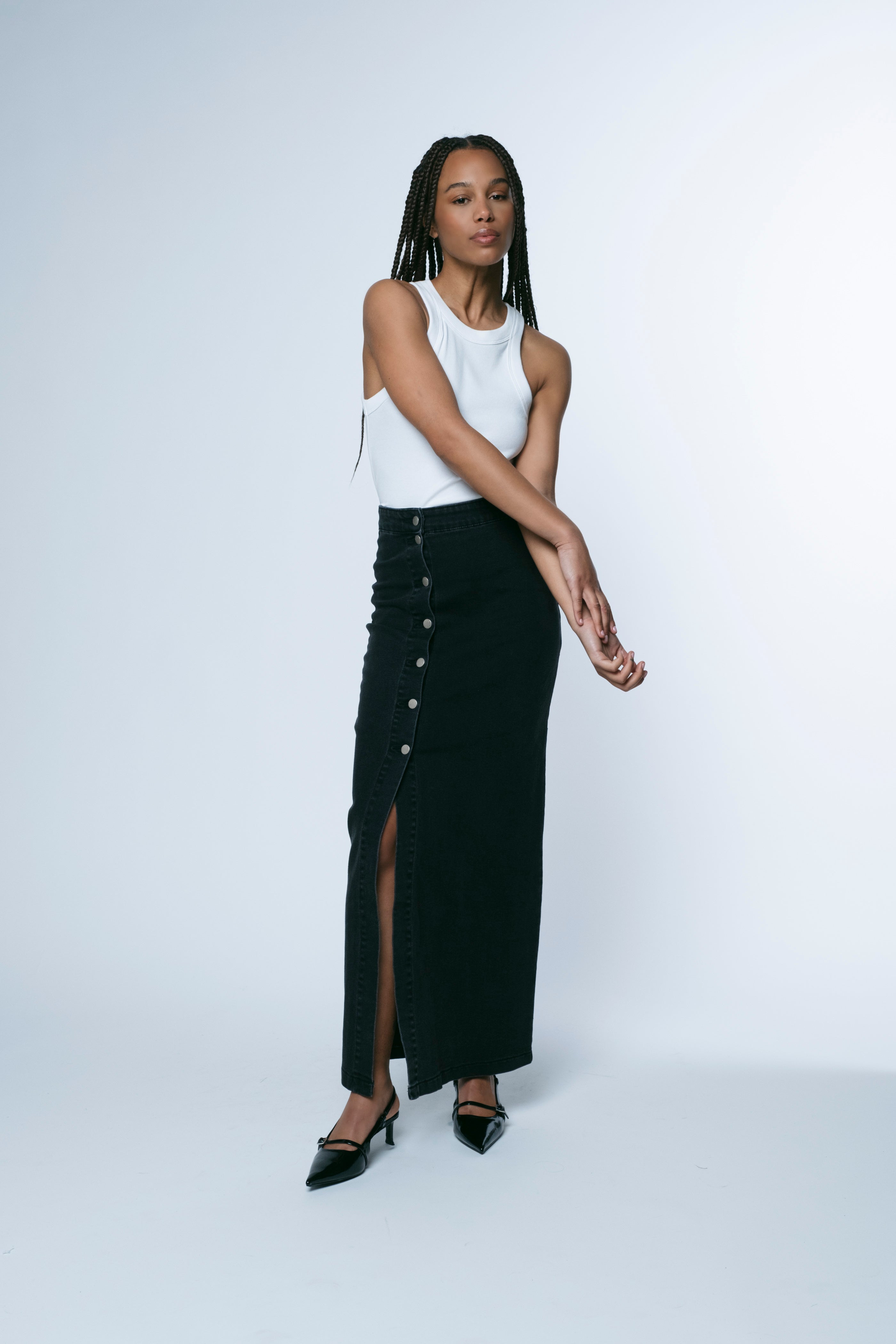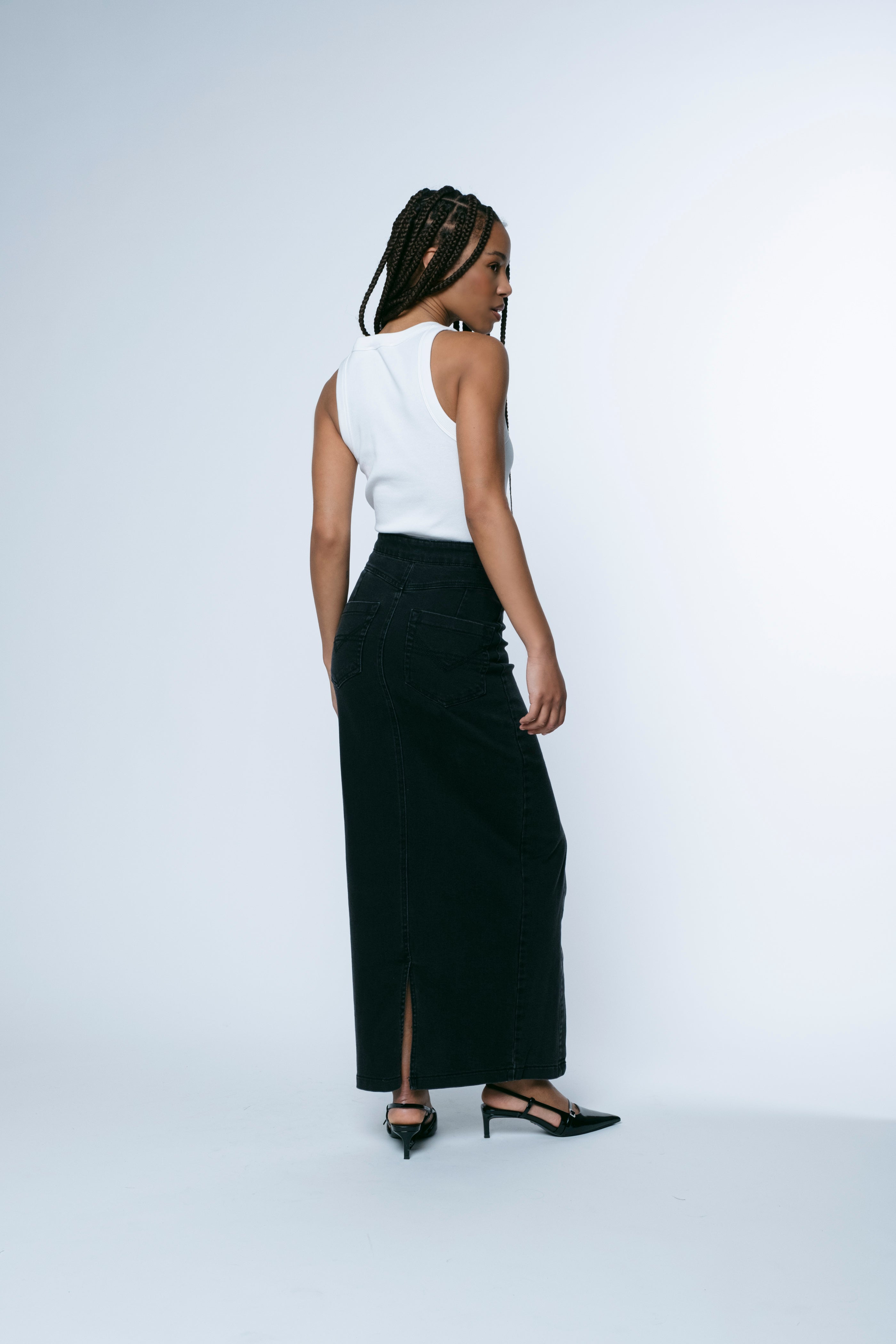 Logan is our take on the maxi skirt. Featuring a side slit, this style enhances the female figure in every way. Perfectly adaptable, it can be dressed up with heeled boots or dressed down with flats and a casual tee. The confortable fabric make it an easy piece to wear on any occasion.