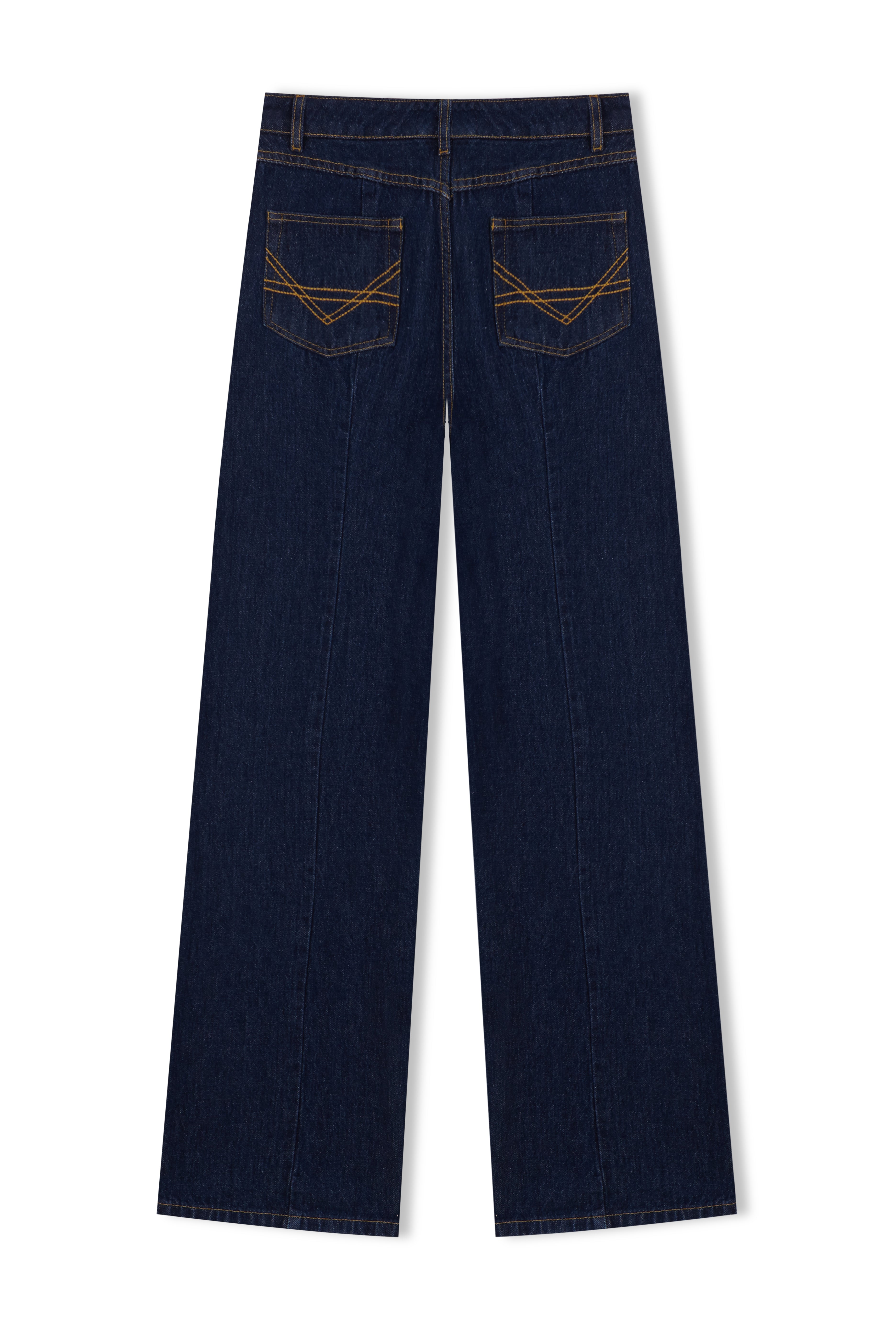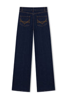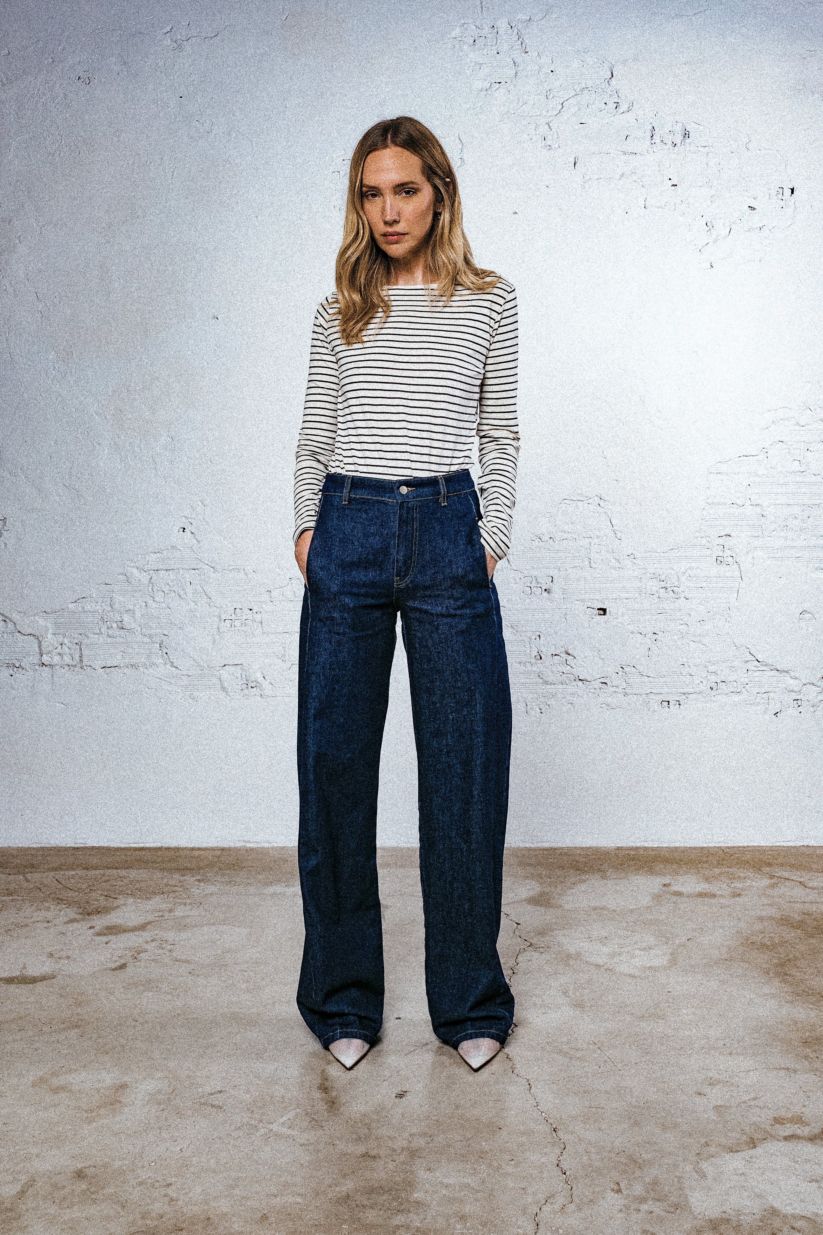 Mickey was inspired by smoking pants. Featuring a side band and a dramatic length, this style will be your chicest jeans. A dream come true: elegance in denim.