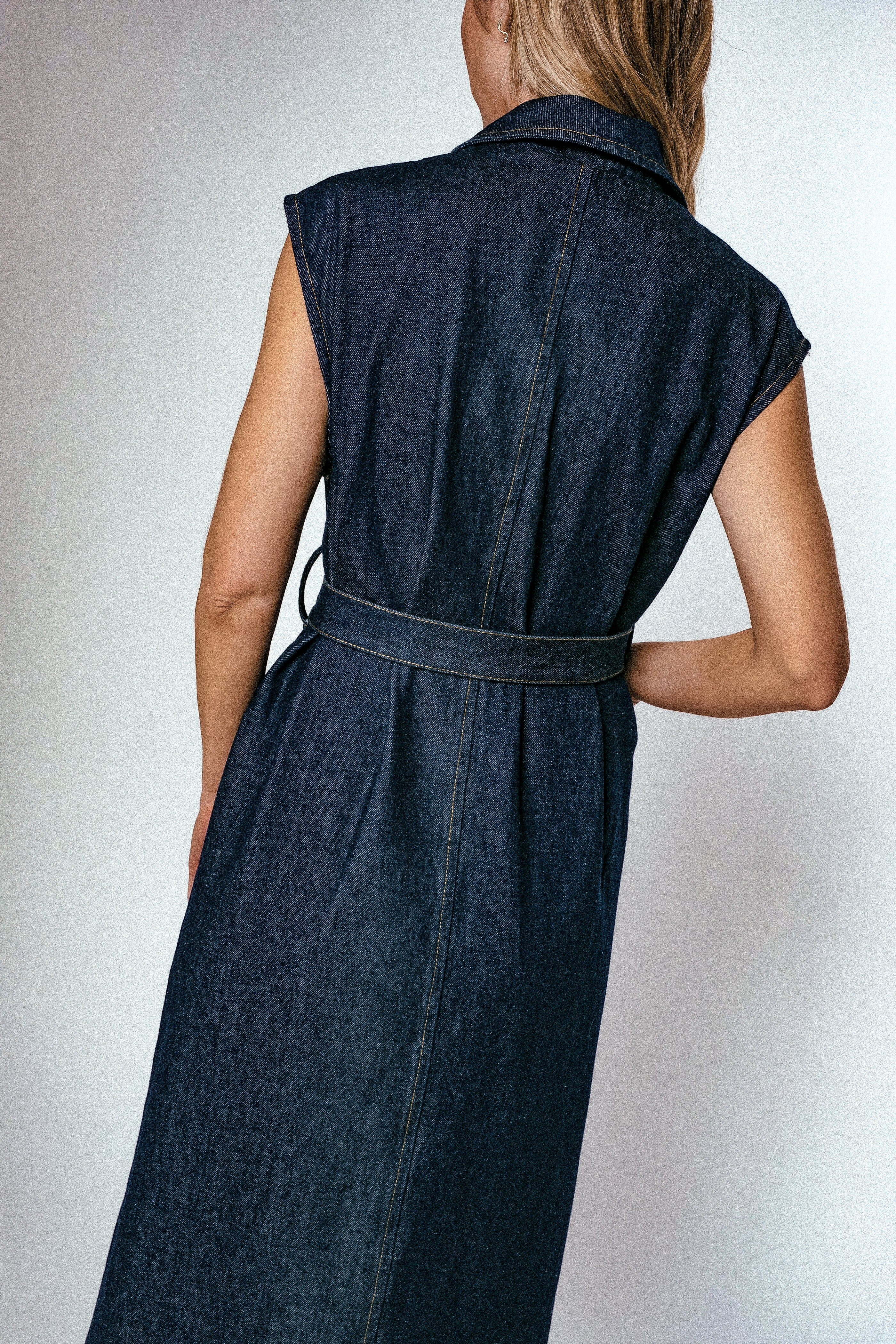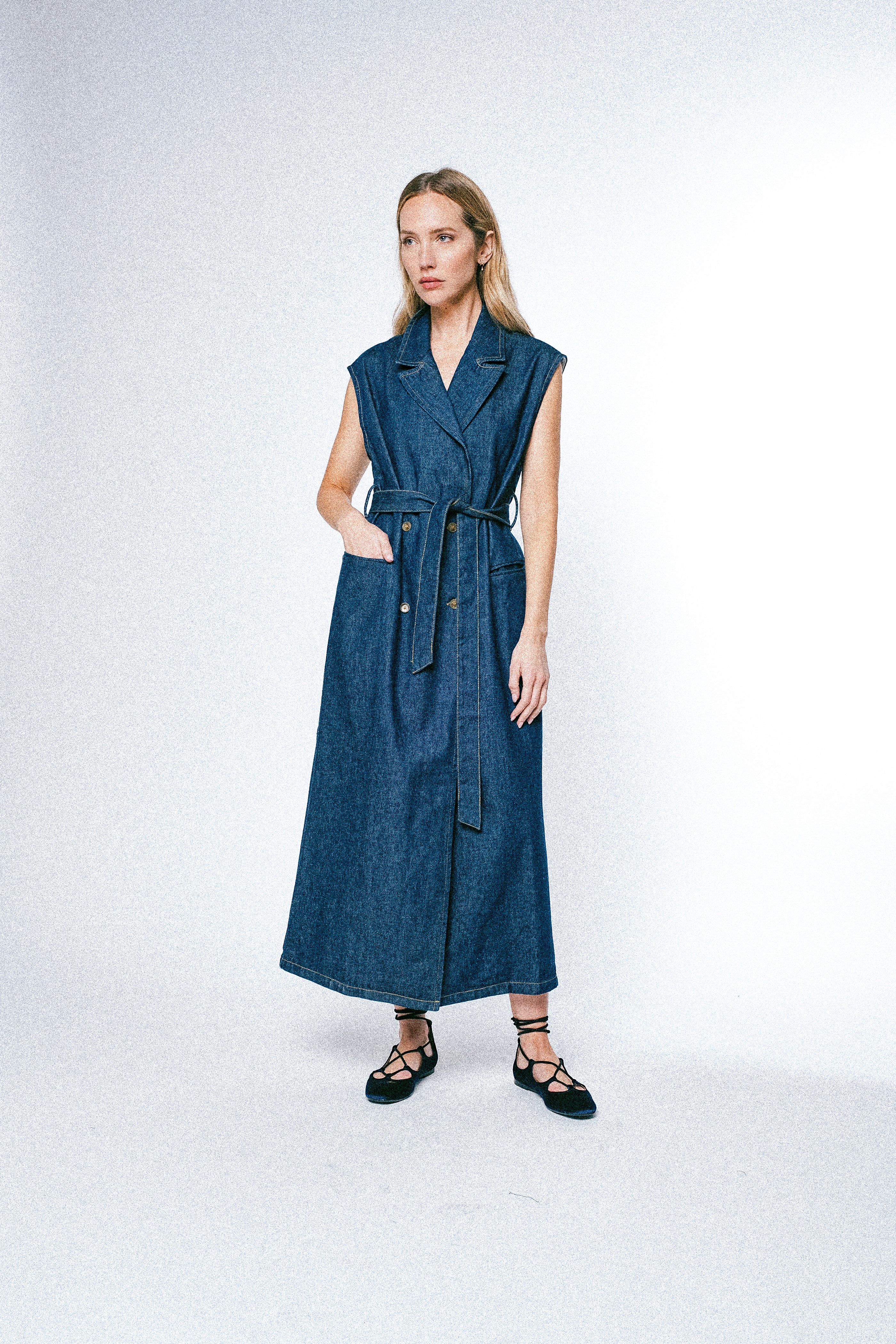 Featuring a peak lapel and a simple belt, it can be worn as a dress or as long jacket over any outfit.