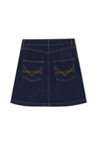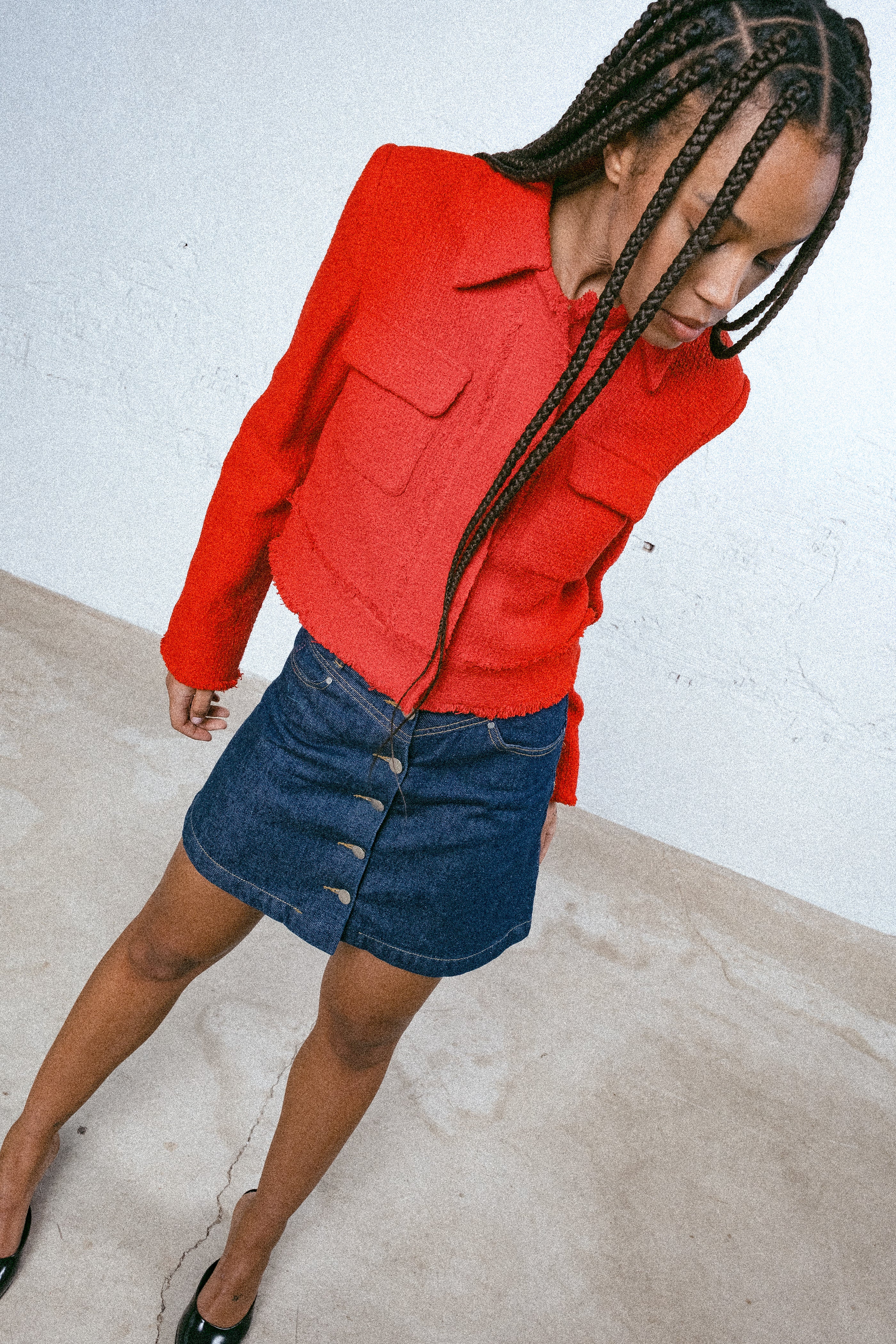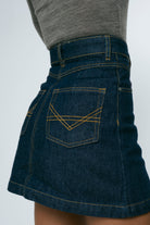 Tiny is our take on the mini skirt. Inspired by the decadent 60's, it features a front button down opening and V shaped stitching details on the front to enhance the feminine figure. Definitely a playful style.