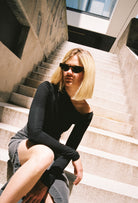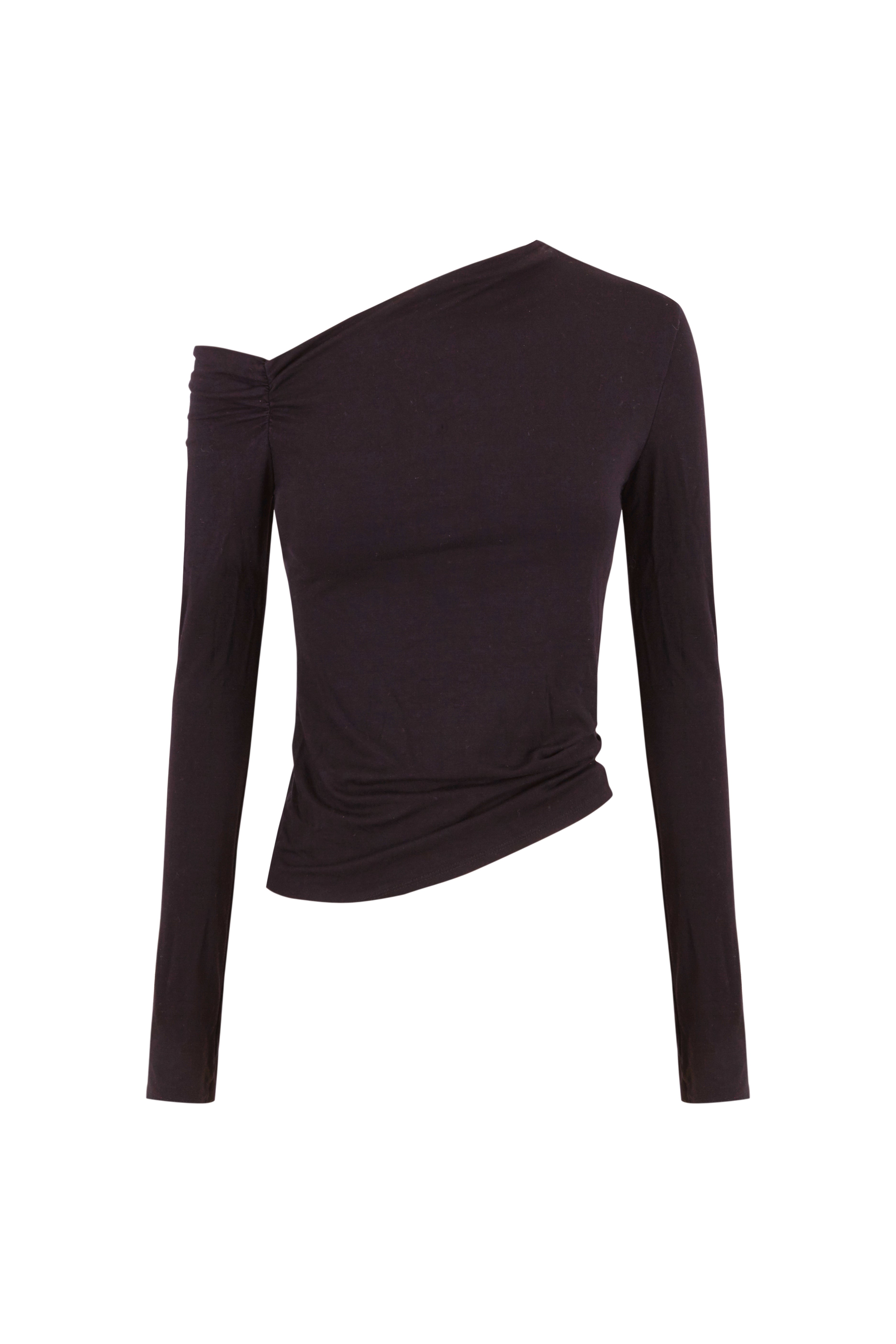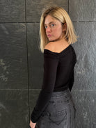 Turn heads with effortless allure in this sleek black off-shoulder top. Designed to highlight your neckline and shoulders, this fitted piece brings subtle sensuality and everyday elegance into perfect balance.